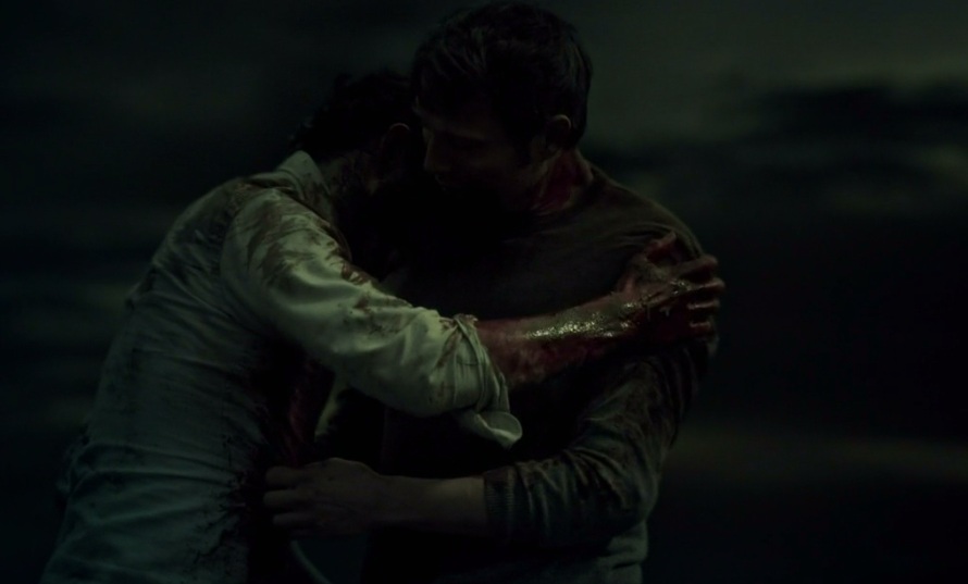 En mi cabeza, y en la de muchos que, como yo, no ven sentido a la repetición de fórmulas ya, Graham y Lecter, habiendo cometido el acto definitivo, se marchan juntos de manera inevitable después de haberlo dicho todo en pocas palabras. Están cubiertos de esa magia negra líquida que ha sido combustible durante tres años, se abrazan, con pocas fuerzas por las heridas que portan y por la adrenalida del sueño cumplido, justo al borde del precipicio. Es maravilloso y para mí es un final. Lo de saltar al abismo, saltar juntos, lo de acabar en un mar más calmado que sus almas y en una noche donde se ha completado la transformación que importaba. Era el cierre. Es el cierre, amigos. Que por si fuera poco viene acompañado de una banda sonora idónea para lo que estamos viendo. Un «Love Crime» de Siouxsie Sioux grabado para la ocasión.