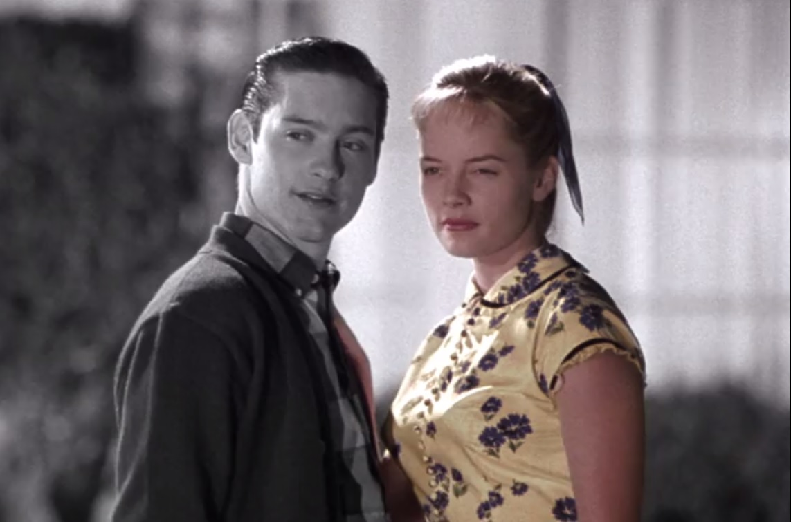 Uno recuerda no saber apenas nada de «Pleasantville» y verla en un pase televisivo sin demasiadas ganas de ver algo trascendente. Poco duró el descanso, pronto me di cuenta de que no estaba ante una película cualquiera y tuve que poner en funcionamiento mis sentidos de inmediato para disfrutar debidamente de uno de los grandes títulos de culto del Hollywood de los 90. La ópera prima del guionista Gary Ross no pudo ser más definitiva y nunca ha podido superarla. En un principio, parece una simple trama de evasión cuando dos hermanos adolescentes y totalmente opuestos (encantadores Tobey Maguire y Reese Witherspoon) son ‘abducidos’ por su televisor y pasan a habitar el mundo de «Pleasantville», un serial de los años 50 en blanco y negro en el que se vive en un ‘status quo’ perfecto, de felicidad perpetua y sin apenas conflictos. Sin embargo, la repentina aparición de estos dos intrusos revoluciona esa pacífica existencia, introduciendo ideas tan ‘revolucionarias’ como la autorrealización, la pulsión del sexo fuera del matrimonio o la puesta en duda de lo establecido, tiñendo progresivamente de color, a medida que van calando estas ideas en la población, un mundo que sus gobernantes quieren mantener inmaculado. Perfecta metáfora de lo que supuso el paso de los bienpensantes años 50 estadounidenses a los expansivos 60, «Pleasantville» se presenta como una obra que logra un virtuoso equilibrio entre la comedia de situación, el sentido de la maravilla mediante sus avezadas técnicas digitales y la profunda reflexión social, resultando en un entretenimiento de altas prestaciones, en la línea de lo que en esos días también supuso la aún superior «El show de Truman». En definitiva, lo que Hollywood nunca tuvo que dejar de ser.